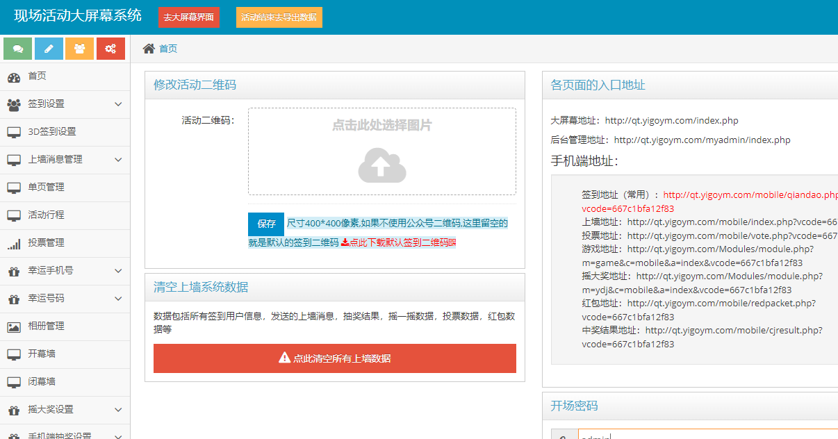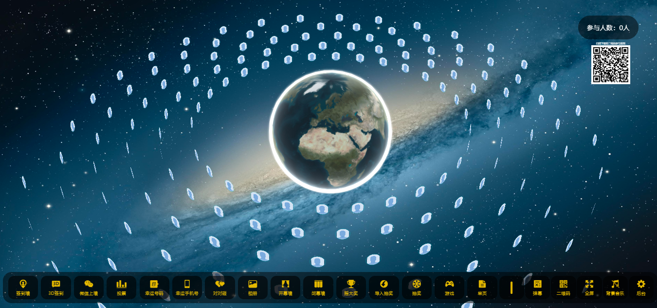 大屏幕互动系统源码 附动态背景图和配乐素材 含搭建教程和配置教程,前端非常炫酷,功能也非常完善,可以用于公司年会或其他组织活动,功能比较多,可涵盖整个活动流程,以下为部分功能截图!