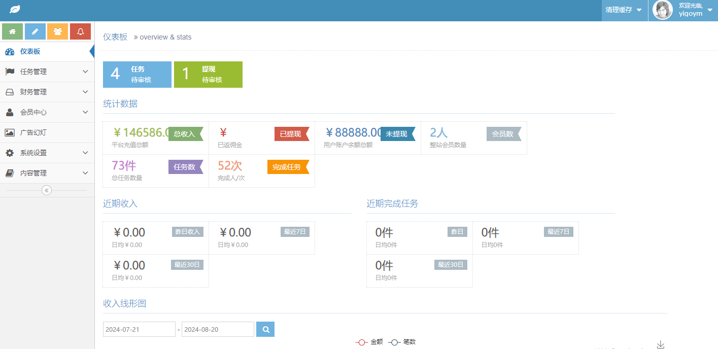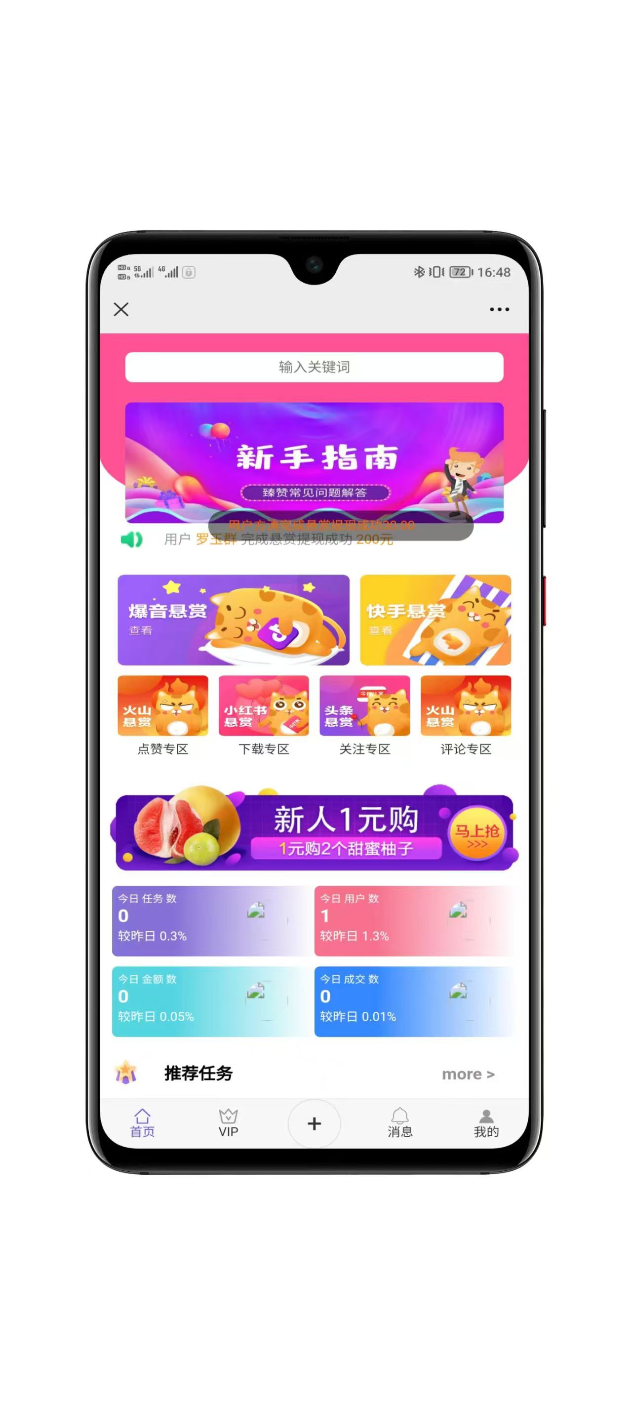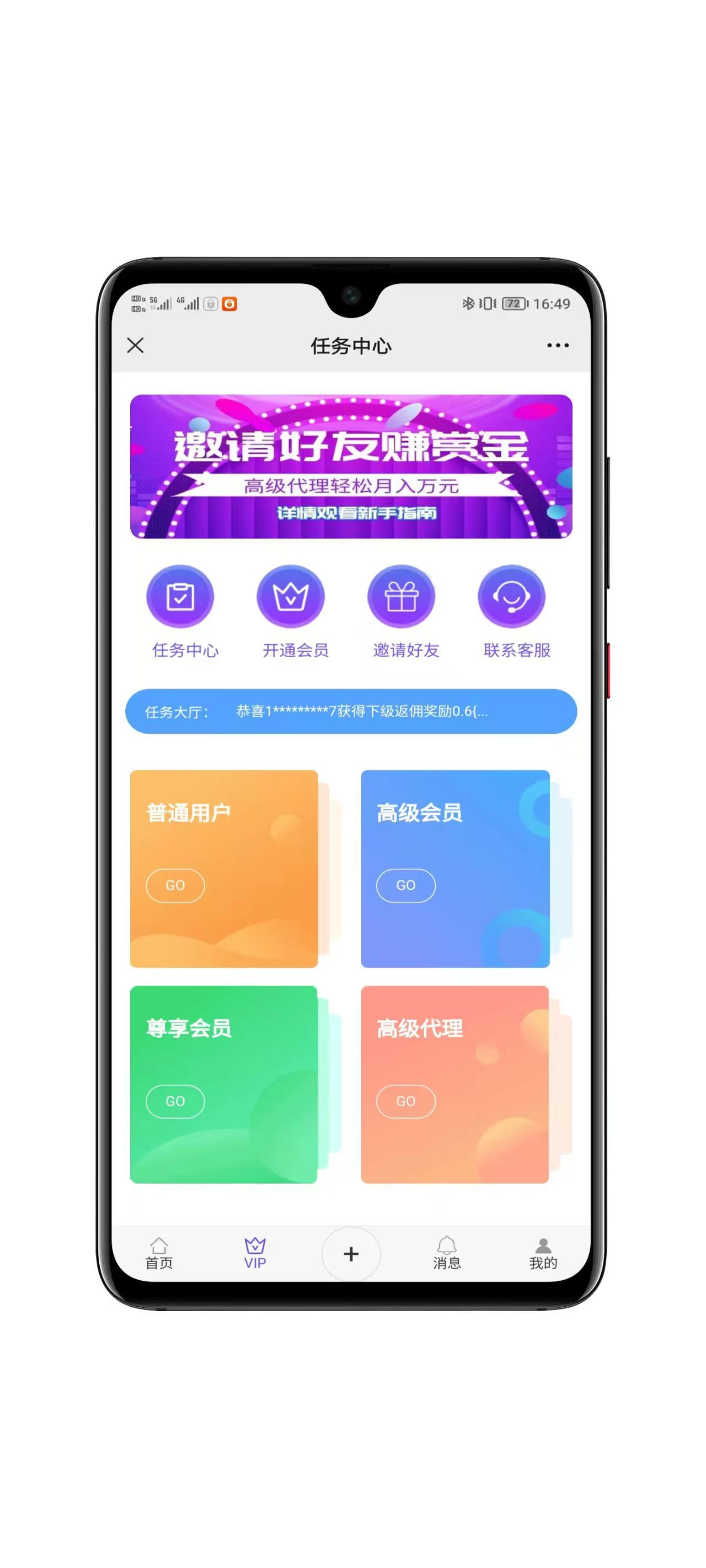 多任务点赞关注赚钱平台,帮助短视频提高人气,后台发布关注点赞任务,然后会员接单,完成有佣金,不同级别的会员每天接的数量不一样,带三级分佣推广系统,通过海报推广好友,获取推广的返佣,同时还可以领取推广下线的任务返利!