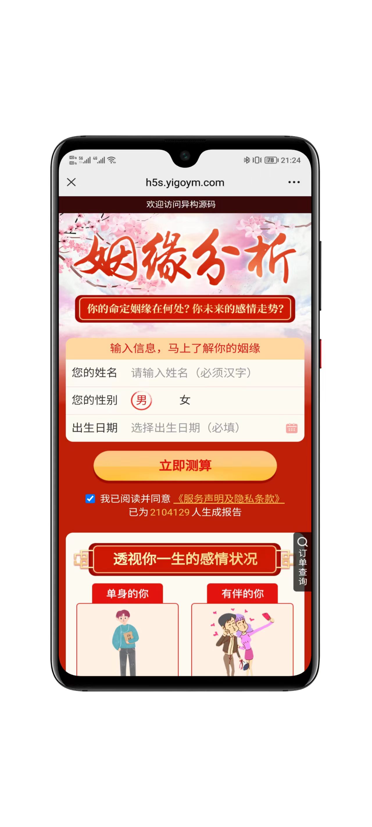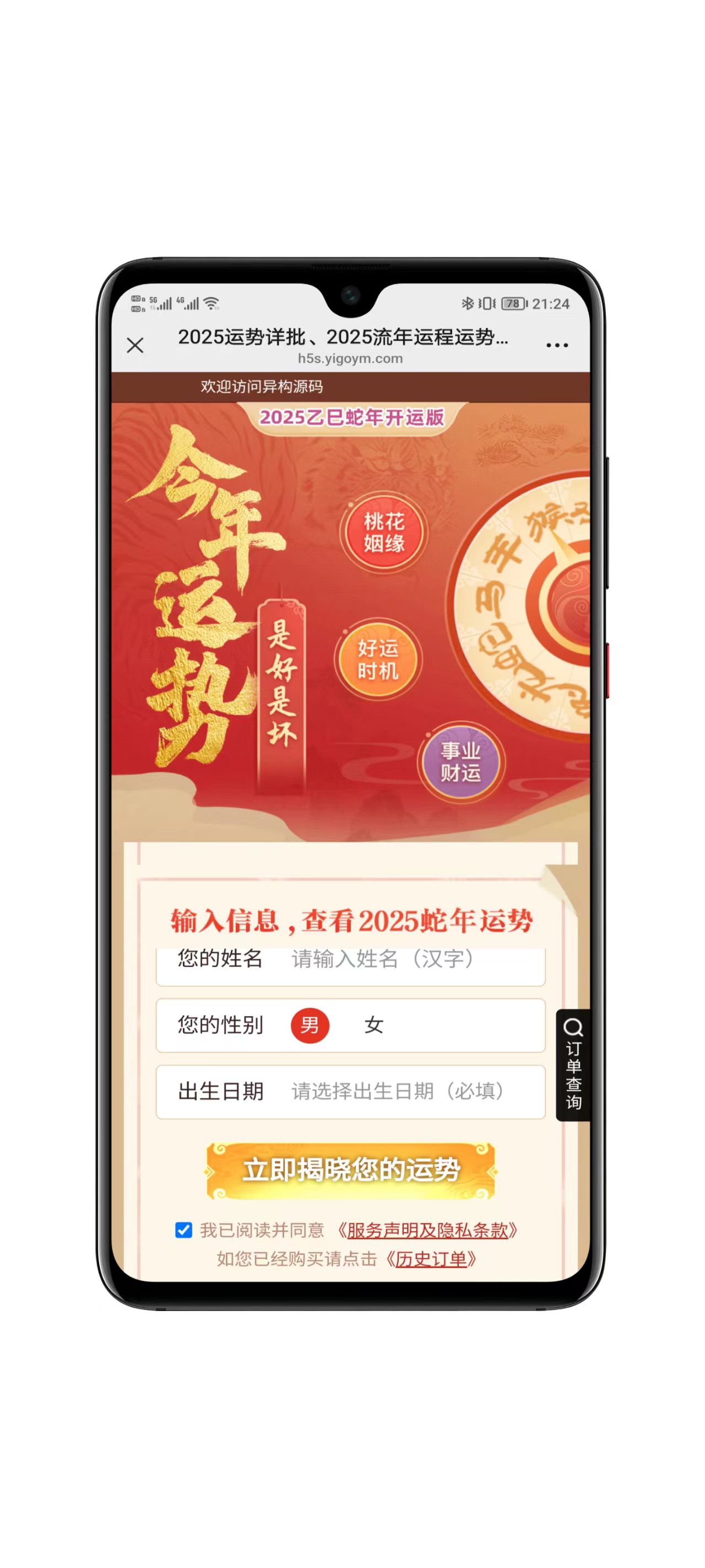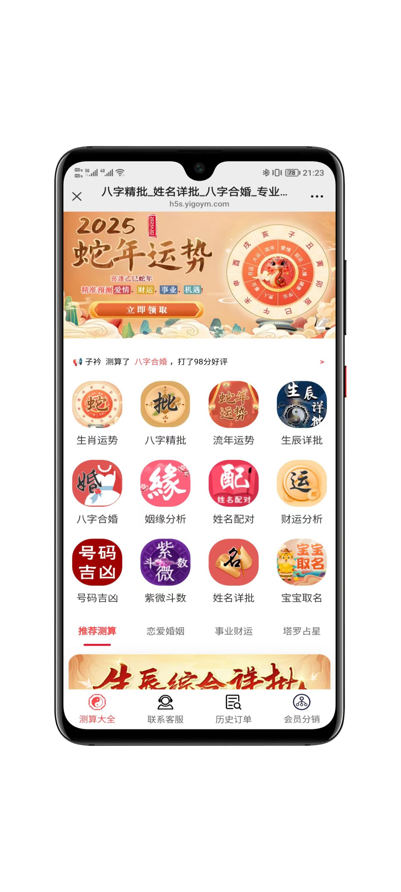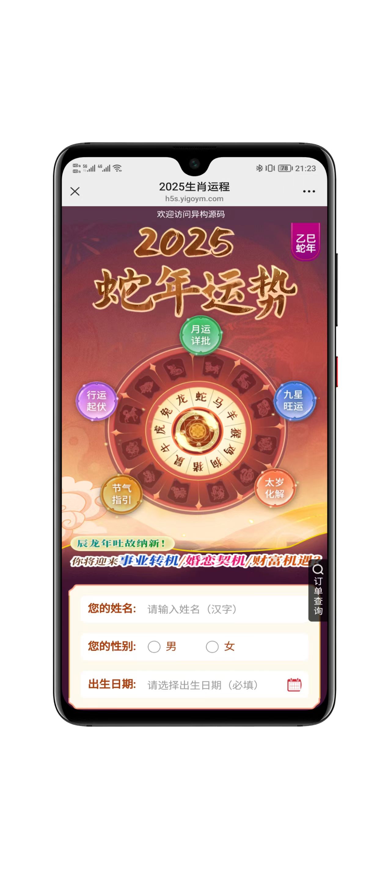 蛇年最新修复版本的运势测算系统源码,源码无授权无加密!可对接企业微信实现在线客服!