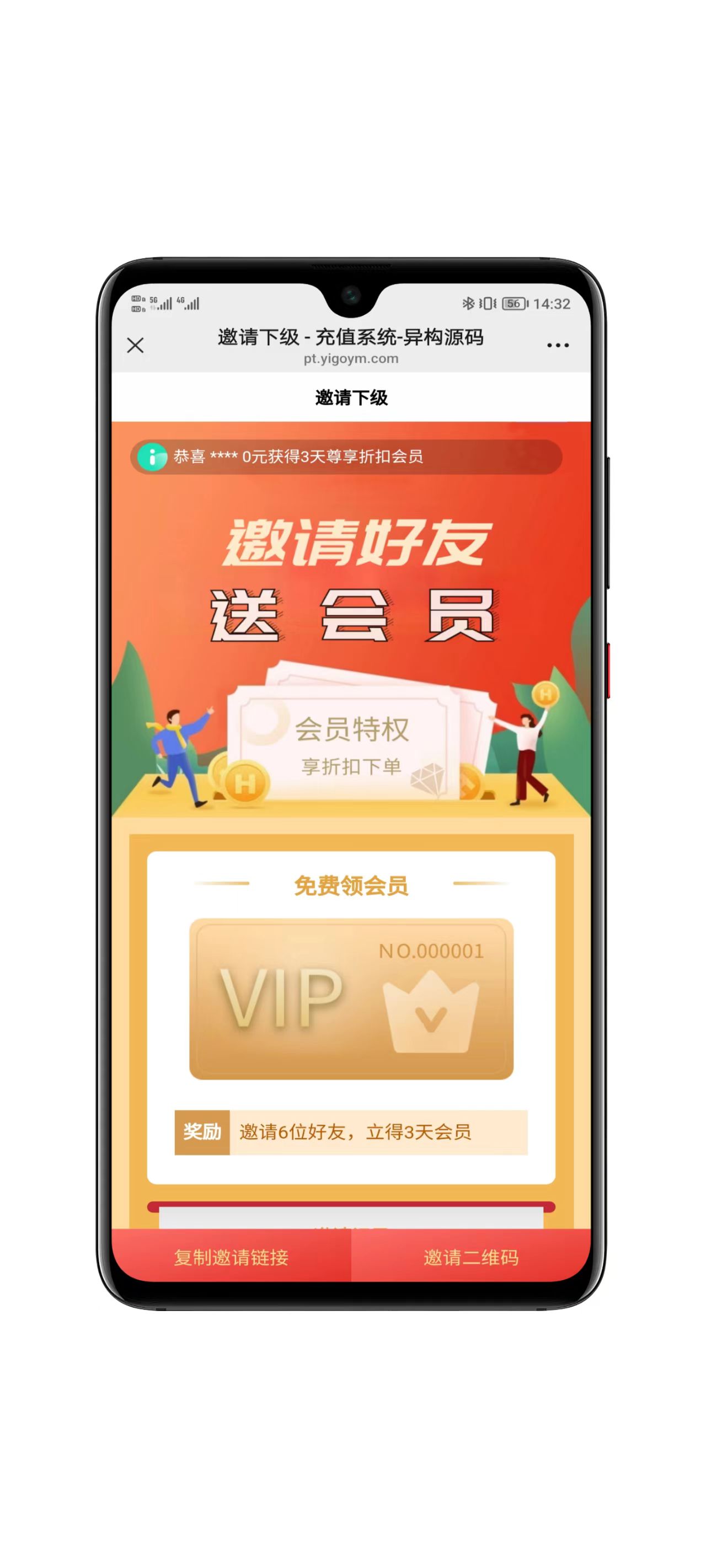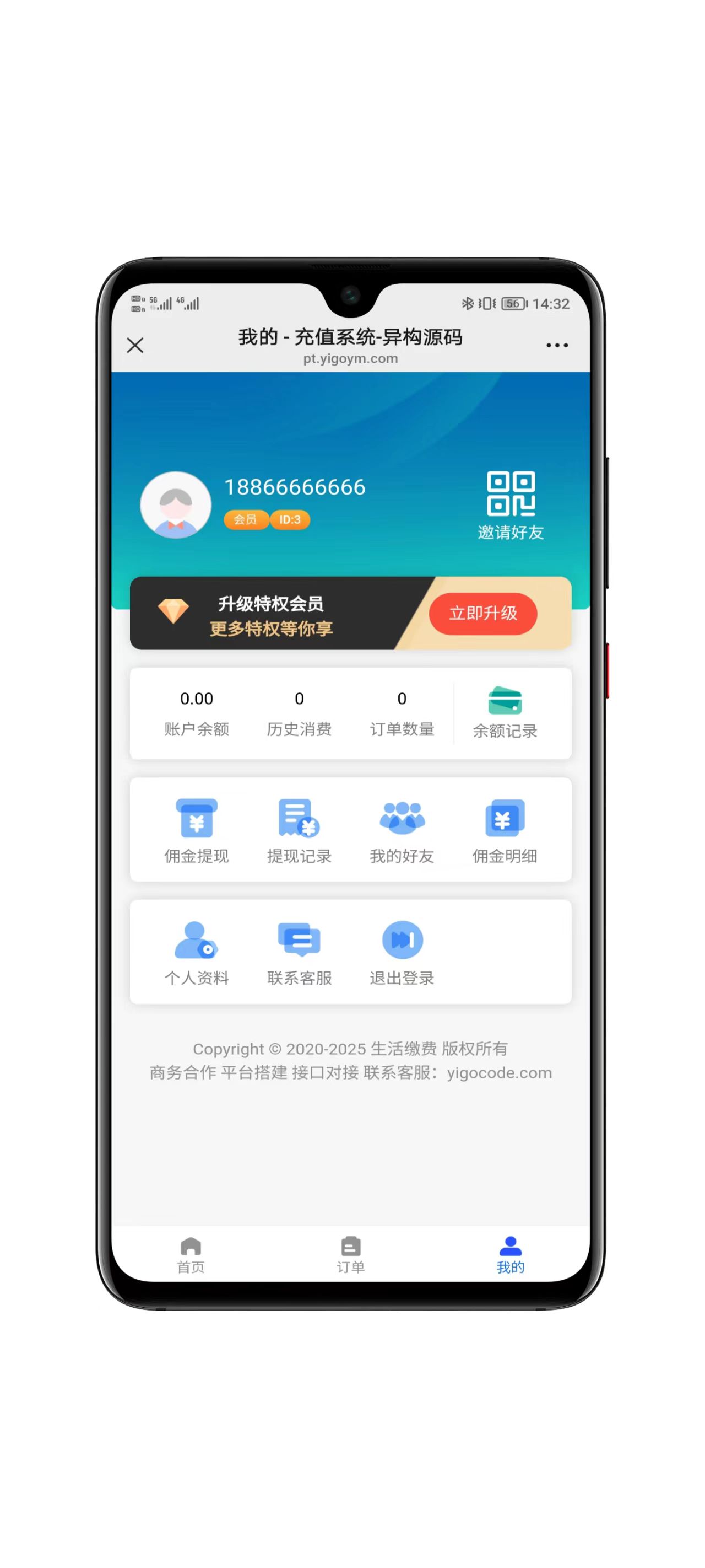 支持分销邀请好友,送会员得佣金,支持余额充值佣金提现;