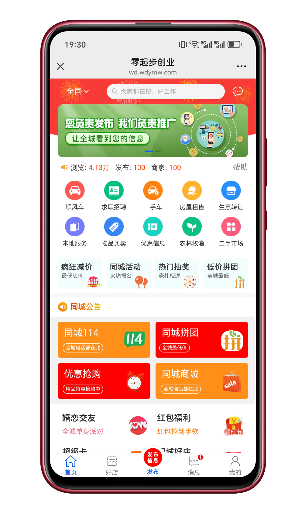 模块涵盖同城顺风车、求职招聘、同城上门、同城好店、同城活动、同城拼团、同城商城、同城114、婚恋交友、同城相亲、二手车、房屋租售、生意转让、本地服务、物品买卖、优惠抢购、农林牧渔、二手市场、同城头条、便民服务等等;以其多功能、全插件支持、定位服务、用户互动、商家入驻、活动发布和开源定制等特点,旨在为用户提供一站式的本地化社交服务,同时也为商家提供新的营销渠道!