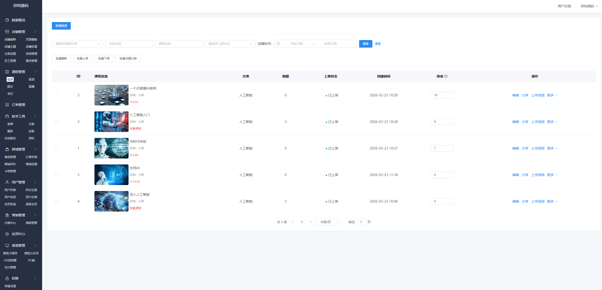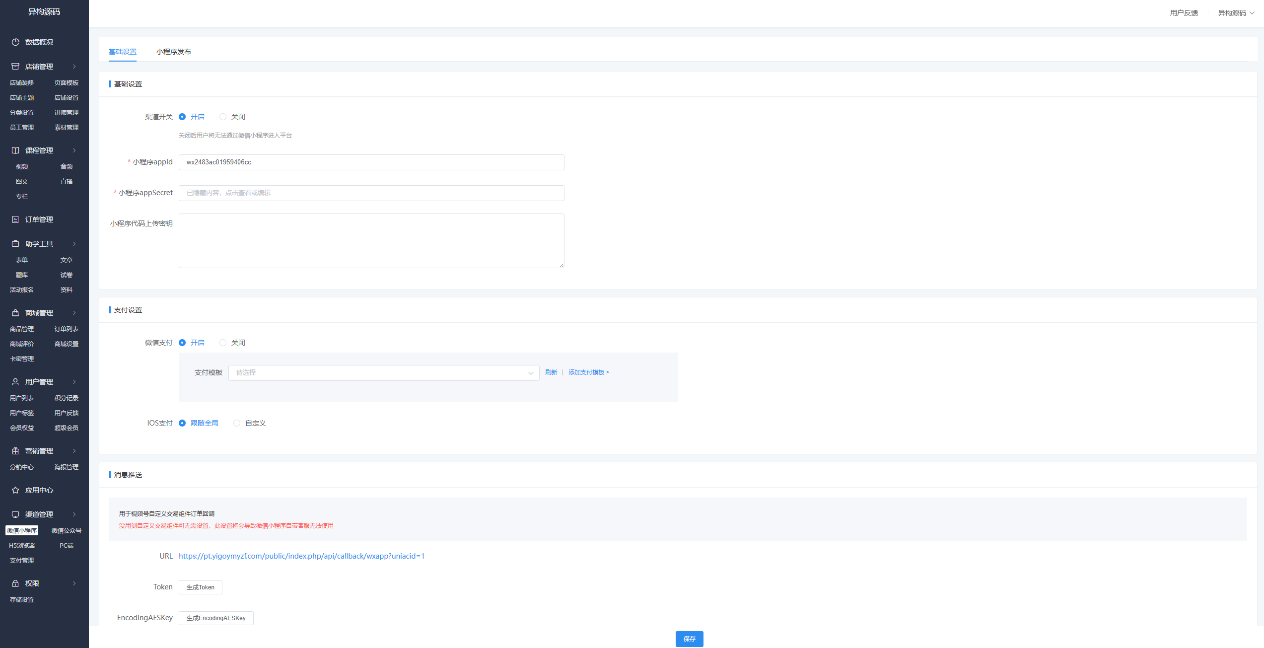 云之道知识付费系统全套源码,知识付费SAAS系统源码,多场景知识付费解决方案,带uniapp+VUE后台,后台功能强大,提供大量DIY组件,支撑客户端界面自定义,包含店铺管理、课程管理、题库管理、试卷管理、活动管理、商城管理、营销管理、渠道管理等,多端支持,小程序/公众号/H5/PC!
