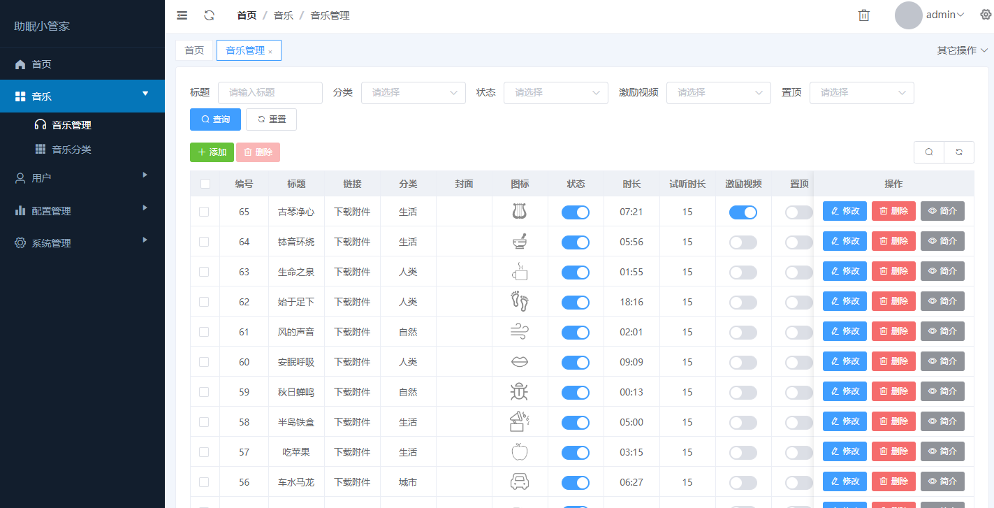 最近很火的助眠小程序,全开源,前端vue,可以打包h5,app,小程序,后台设置流量主广告,很不错的一套源码!已内置近百种音频数据,部署即可使用!