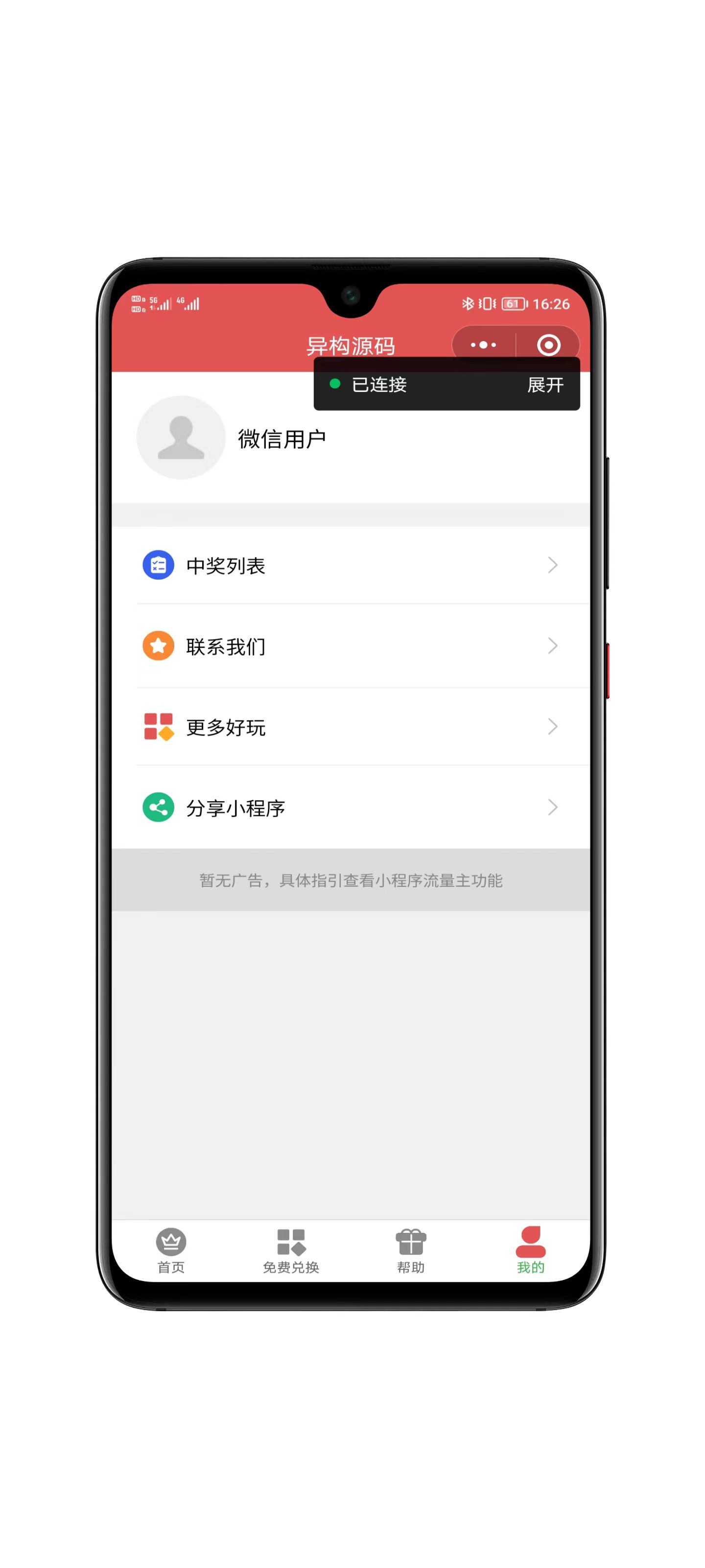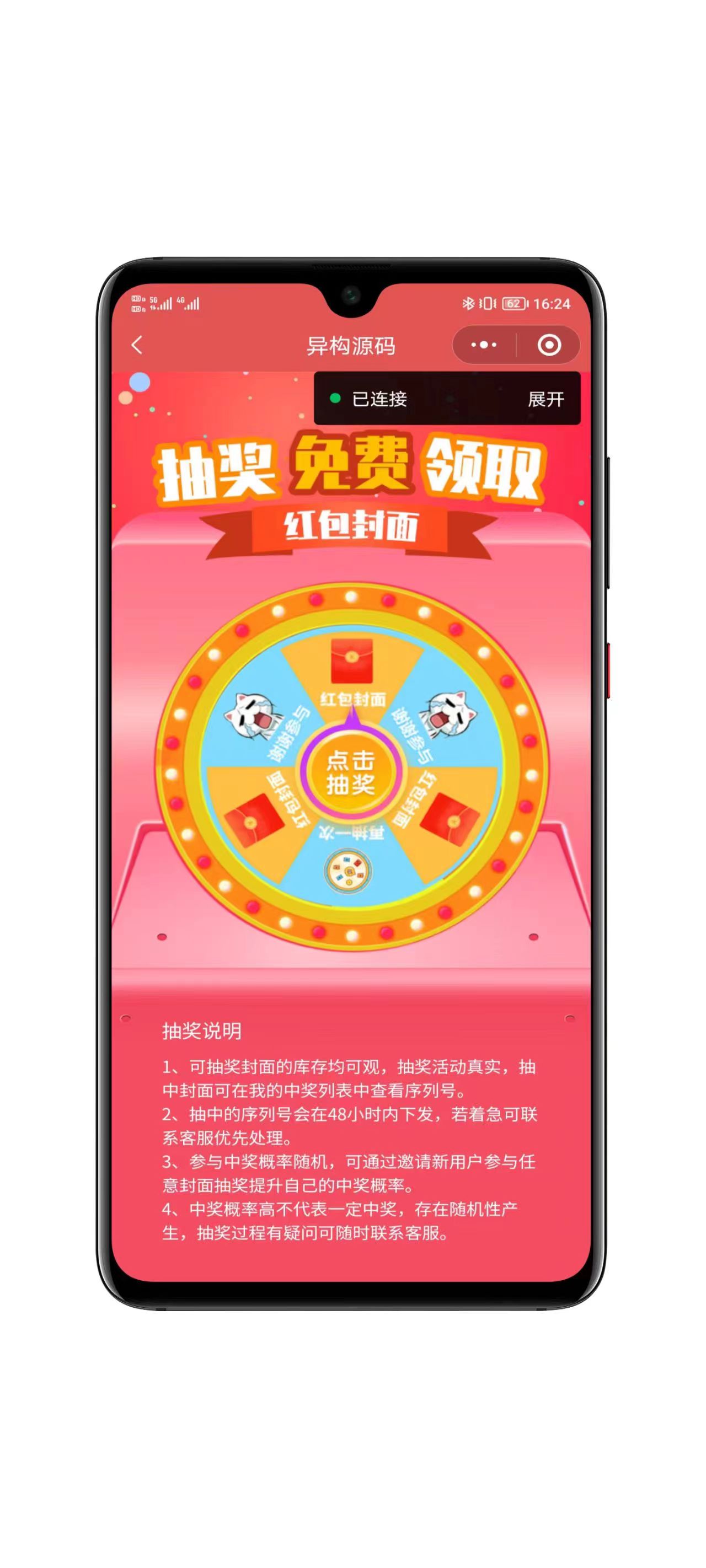 邀请好友获取抽奖机会,或者观看激励式广告获取抽奖机会,方便推广其它小程序!