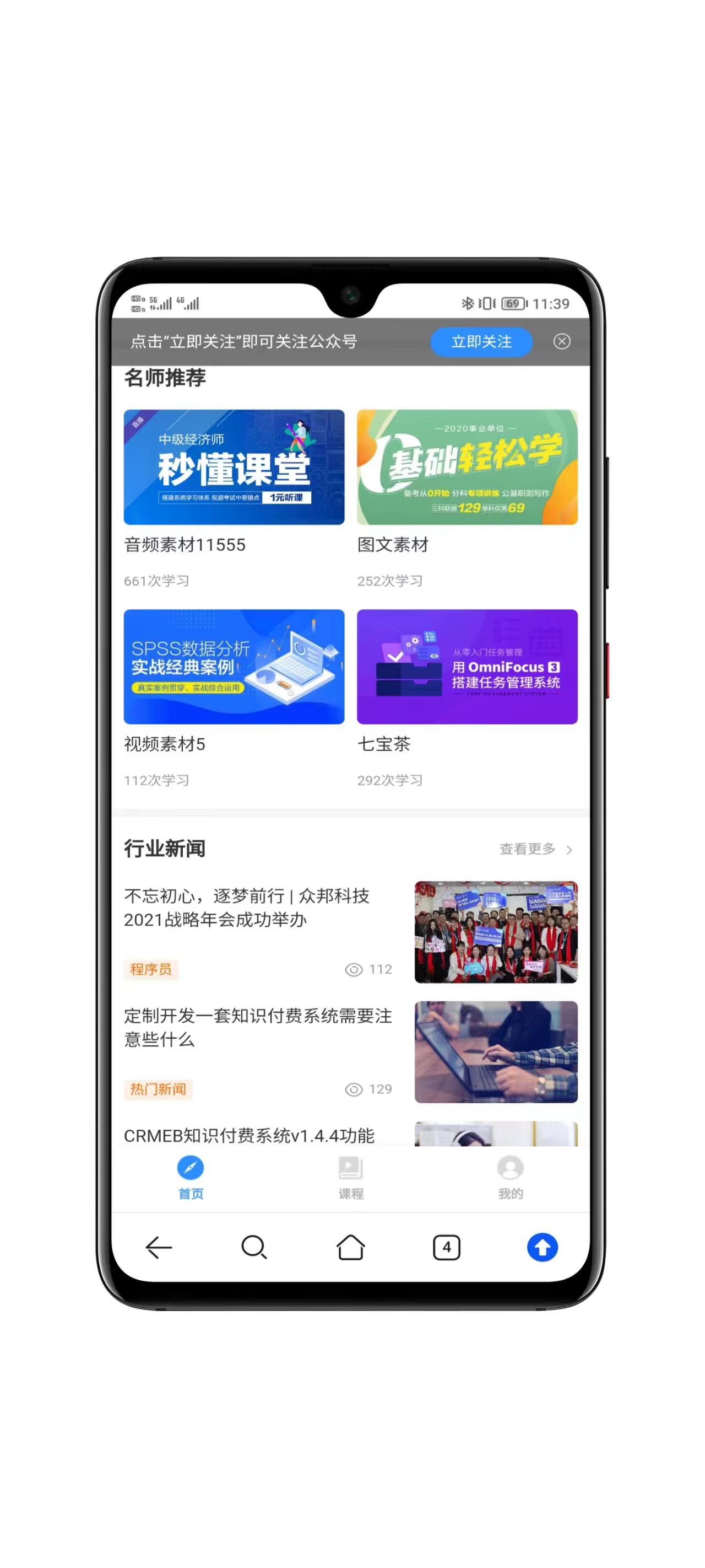 课程系统、分销推广、付费会员、营销活动、支付、客服系统、文章管理、登录注册,微信模板消息通知等功能模块构成;